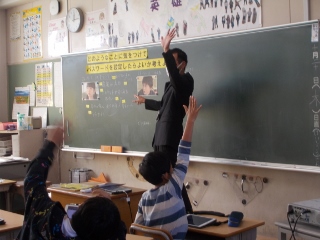 6年生の社会科では、明治の国つくりを進めた人についてグループで話し合っています。