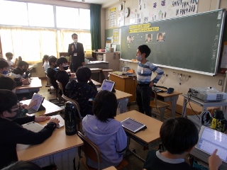 5年生の学活で、パスワードの設定の仕方について学習しています。「他の人にわかりにくく、自分の覚えやすいものがいい」と話していました。