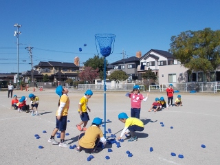 1,2年生が、玉入れの練習をしていました。