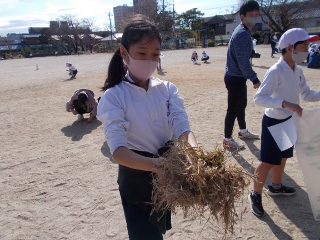 美化委員会が、運動会に向けて草抜きプロジェクトを行いました。