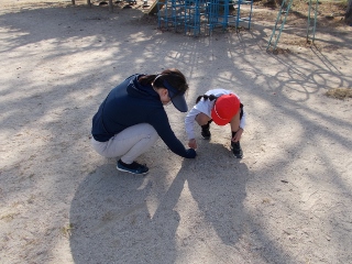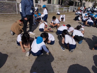 昼放課、運動場に向けて運動場をきれいにしようという取組です。