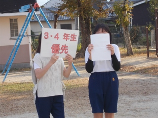 6年生が、校内運動会に向けて、準備をしていました。