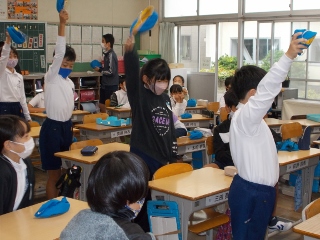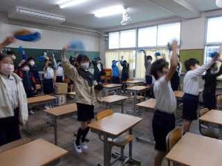 いよいよ明日は、校内運動会。応援の練習にも熱が入ってきました。6年生以外は大声を出せませんが、帽子を回したりウエーブをしたりするなど、みんな一生懸命に練習していました。
