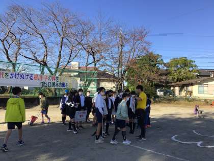 昨日は、雨で運動会の準備ができなかったため、開始時間を繰り下げて朝から6年生が準備をしています。