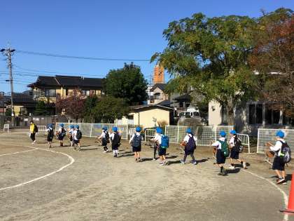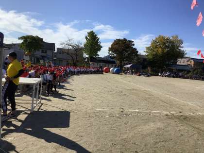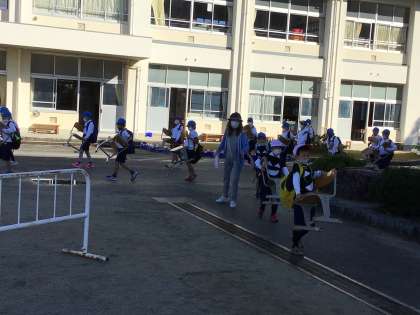教室から椅子を持ってきて運動場に移動し、運動会がはじまります。
