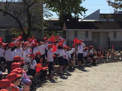 6年生が協議している間は、1年〜4年生が応援を頑張っています。