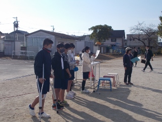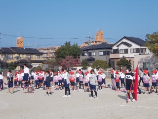 明日の運動会に向けて、開会式や応援の練習をしています。