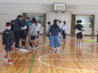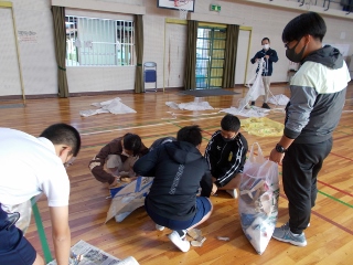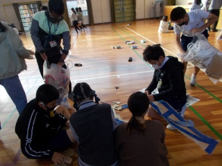 運動会で使った応援旗やビブスやたすきなど、当日はできなかった物を、を6年生の子どもたちが片づけをしてくれました。