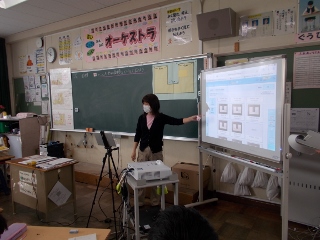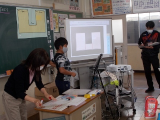 4年生が算数の学習で、へこんだ形の面積を求めいています。