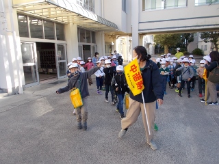 2年生が生活科で地域について調べています。今日は、町探検に出かけました。「消防署」「警察署」「福祉センター」「金谷カフェ」などに出かけて学習をします。子どもたちは、とても楽しみにしていました。