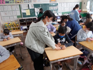 6年生に優しく教えてもらって、下級生もうれしそうです。