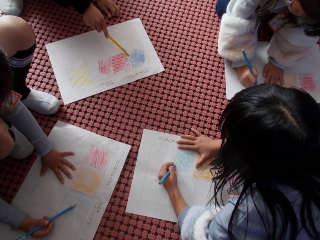 「この丸いの(マンホール)は、でこぼこだよ」「げた箱のマットもでこぼこでおもしろい」など、たくさんのでこぼこを見つけていました。