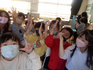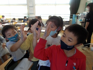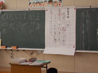2年生が、書写の時間に書初め大会の練習をしています。