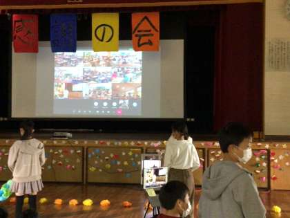 1年生〜5年生の子どもたちは、教室でリモートで参加をしています。