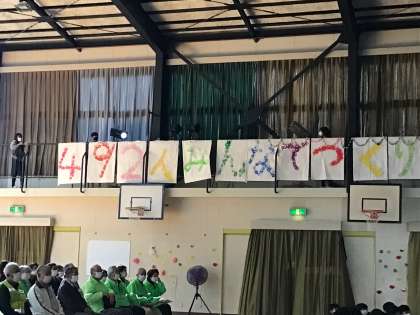 いつもお世話になっている見守り隊やねぎぼうず、オヤジの会、学校サポーターの方々を招いて、感謝の会を行いました。