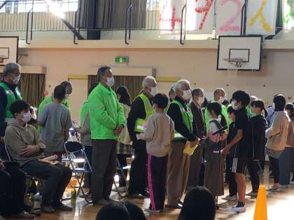 いつもお世話になっている見守り隊やねぎぼうず、オヤジの会、学校サポーターの方々を招いて、感謝の会を行いました。