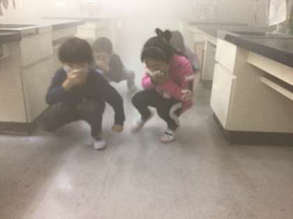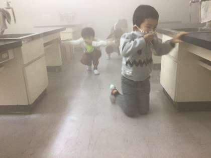 火事などで、煙道を通る時には口と鼻をハンカチなどでおさえて、なるべく身体を低くして通ることを学びました。