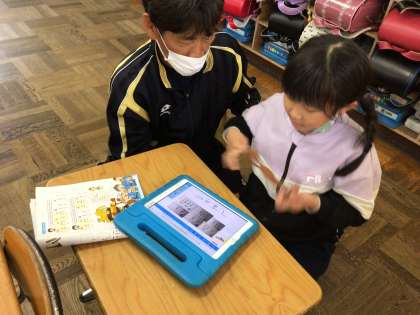 2年生が、音楽の学習でお祭りの音楽について学んでいます。