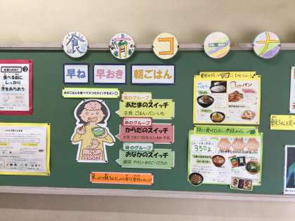 先週は、4年生に向けて学校保健委員会で、朝食を食べることによって「頭スイッチ」「パワースイッチ(体)」「お腹スイッチ(便通)」の大切な3つのスイッチが入ることを教えてくれました。