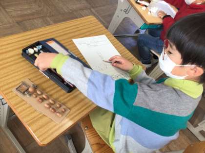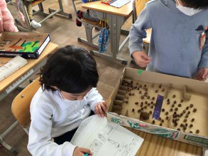 1年生が生活科で、おもちゃ作りをしました。