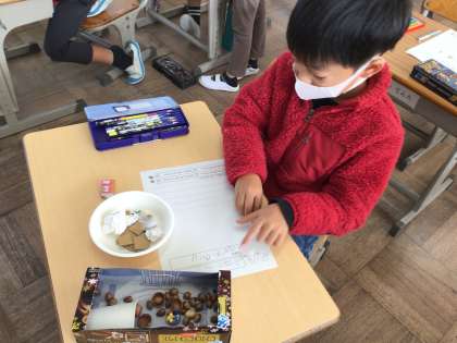 秋に、どんぐりや松ぼっくりを拾って作ったものです。