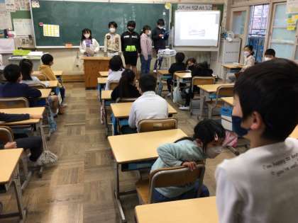 これまで、学習してきたエコについての内容を全校児童に伝えにいきました。