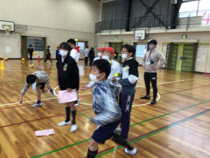 体育館では、ボール操作のゲームを行なっていました。