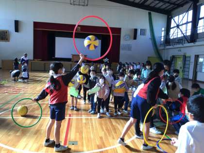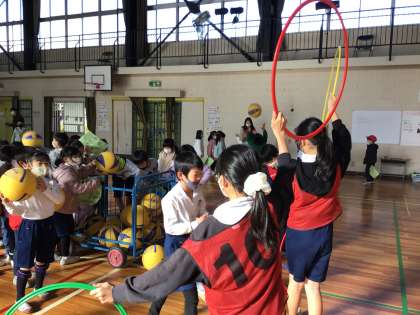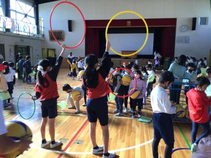 今回は、投げる力や体の使い方の力を高めるために、体育委員が考えたさまざまなゲームを行いました。
