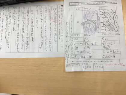 2年生の国語の学習で、2つのものを比べてちがいを説明しました。