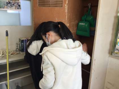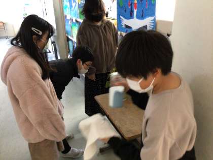 年末にあたって、教室の大掃除をしているクラスがあります。