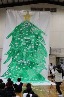 巨大ツリーの紹介を行ったり、校長サンタが現れたりしました。