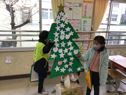 クリスマスフェスタの第二部は、縦割り班ごとに各クラスに分かれて出店を行いました。
