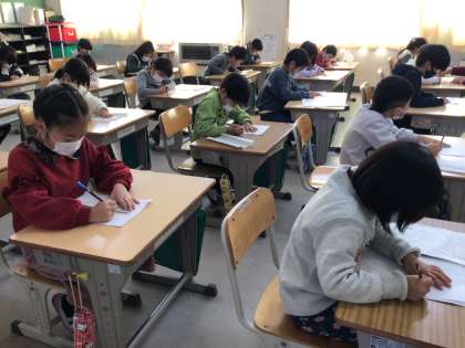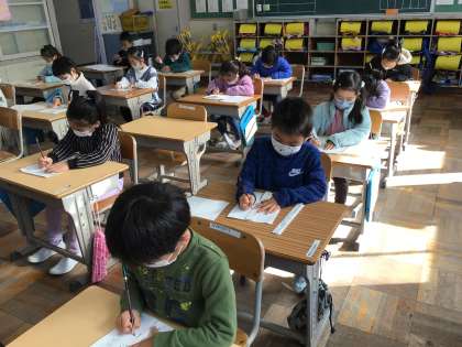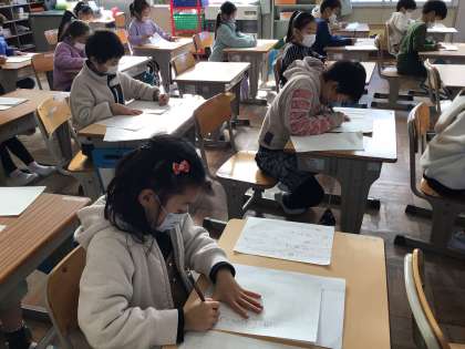 1、2年生は硬筆(鉛筆)で、3年生〜6年生は毛筆で書きました。