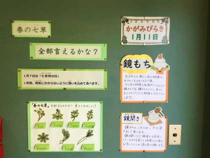 また、おせち料理や七草についてのいわれも掲示してあります。