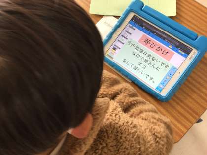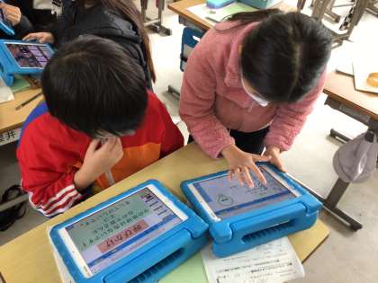 学習用タブレットの「発表ノート」の機能を使って、まとめています。