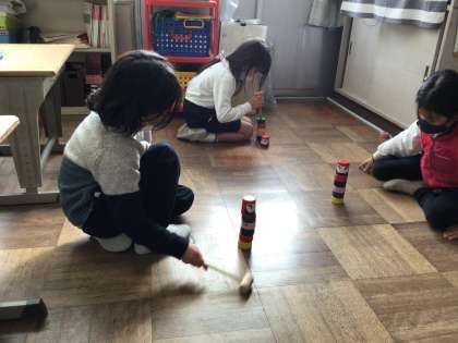だるま落としでは、力の加減を工夫して全てのだるまを落としている子もいました。