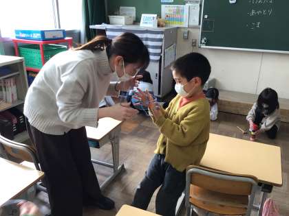 1年生が、生活科の時間に昔遊びをしました。