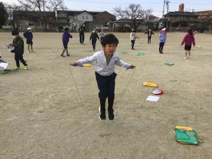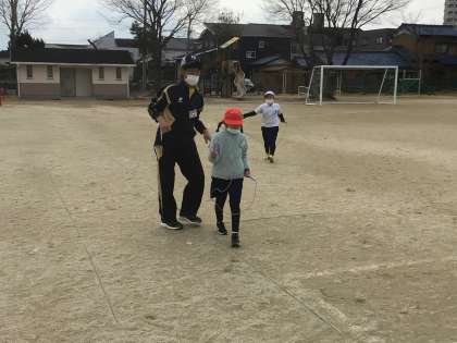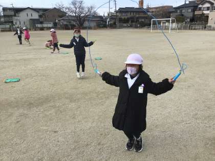 縄跳びランニングをしたり、二重跳びや後ろ回し跳びに挑戦しています。