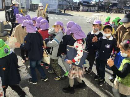 先日、根川こども園の年長さんたちが、学校に見学に来ました。