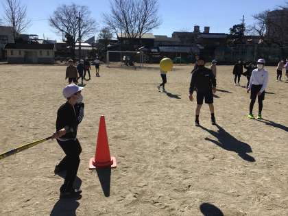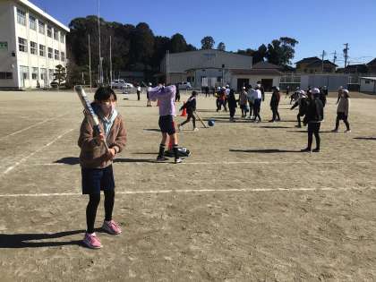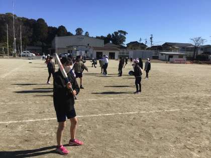 5年生の体育の学習で、ソフトベースボールを始めました。