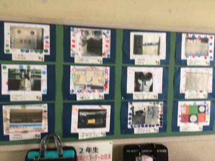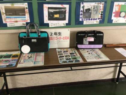 2年生は、3年生で使う習字道具の見本も展示してあります。
