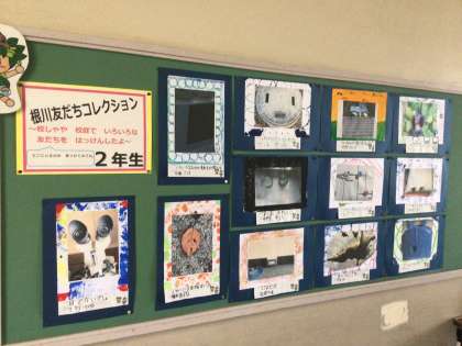 子どもたちが根川小学校創立150周年を記念して、学校の風景を描きました。