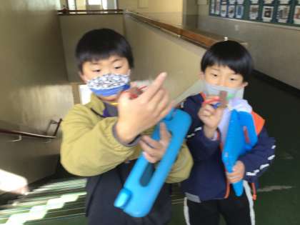 1年生が、図工でスポンジを使って隙間に入れるすきまちゃんを作りました。