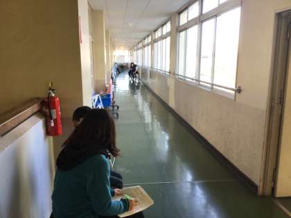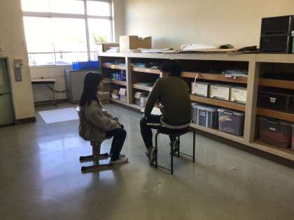 朝の時間を使って、1人ずつ先生と話をしています。