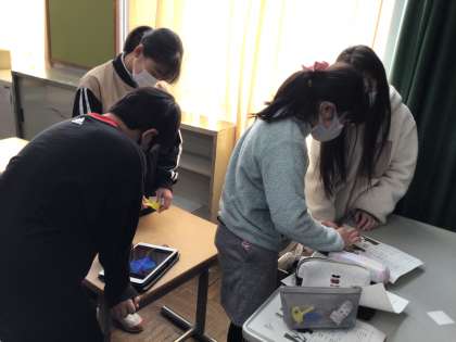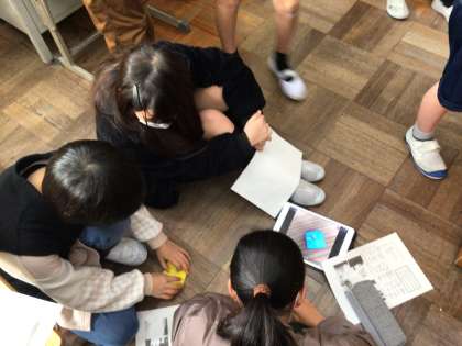 「タブレットを見せるとわかりやすいよ」「この箱は、もっと大きい方がいいかな」