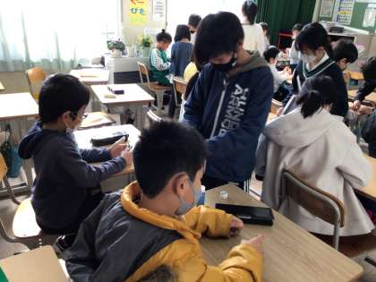 5年生は、優しく教えています。徐々に、学校のリーダーとしての自覚が出てきました。