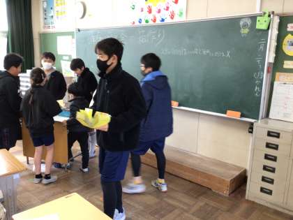 6年生を送る会の準備を、5年生が中心となって進めています。