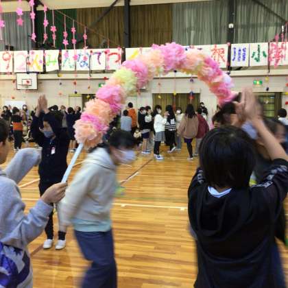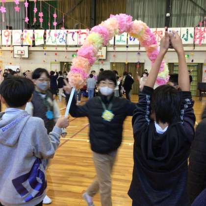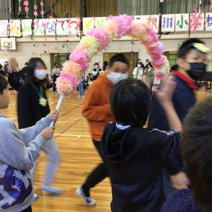 最後は、5年生が手作りしたお花のアーチで退場しました。