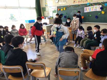 第2部は、各ふれあい班の教室に分かれて5年生が考えたゲームを楽しみました。