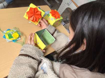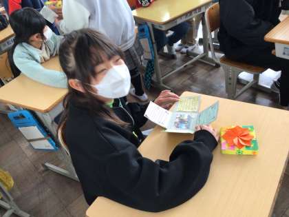 その後は、6年生にプレゼントを渡していました。メッセージを読んで、6年生も、喜んでいました。